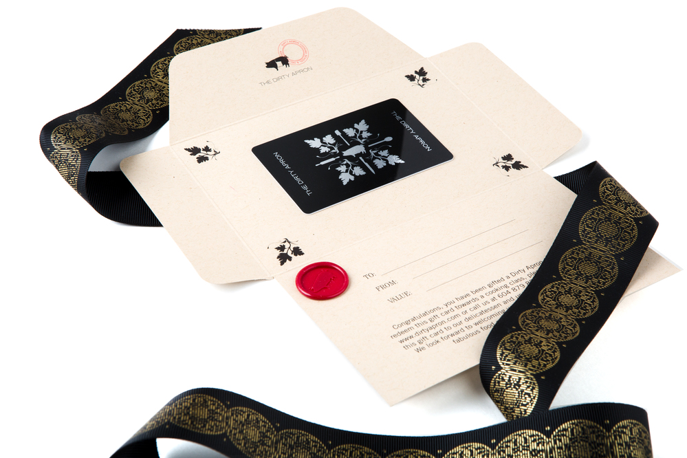 The Dirty Apron gift cards are the perfect present for the culinary connoisseur in your life. Redeemable towards cooking school classes, deli shop items and more, the gift cards are beautifully designed and packaged in our signature style. Prices shown reflect base price plus any applicable tax and service charges.